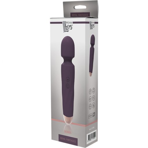 ROYAL FANTASIES NOMIA. El estimulador de varita Nomia de la colección Royal Fantasies de Dream Toys es una varita morada con un elegante acento de color roségold en la base, una cabeza redondeada y un cuello ligeramente flexible. Nomia tiene un motor potente que ofrece 7 patrones de vibración y 3 velocidades. El vibrador de varita Nomia es recargable con el cable USB + pin incluido. Está hecho de silicona y ABS de grado alimenticio, resistente al agua IPX7, seguro para el cuerpo, libre de ftalatos y libre de látex. El funcionamiento se puede realizar con 2 botones: el botón inferior para encender / apagar el vibrador y el botón superior para cambiar los programas de vibración. Vibrador de varita Mini que se puede usar en todo el cuerpo Cuello flexible Un motor 7 patrones de vibración y 3 velocidades Recargable USB + pin, cable incluido Resistente al agua IPX7 Hecho de suave silicona de grado alimenticio + ABS Seguro para el cuerpo y libre de ftalatos, libre de látex Dimensiones: 19,5 cm de longitud, 4,2 cm de diámetro Haga clic aquí para descargar el manual.. Medidas de la caja: 26 x 9 x 5. Longitud del producto en cm.: 20. Color: Púrpura. Material: Silicone / ABS